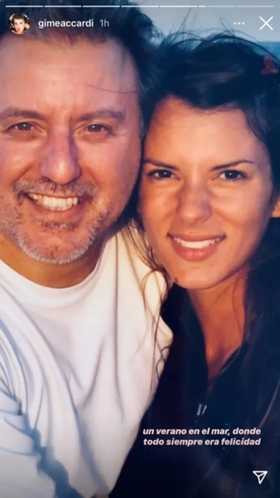 De vacaciones en la costa atlántica junto a su pareja, Nico Vázquez, Gime se vio invadida por la nostalgia y recurrió a sus historias de Instagram para recordar a su papá con una foto retro playera. "Un verano en el mar, donde todo siempre era felicidad", escribió junto a una foto en la que se los ve abrazados y sonrientes.