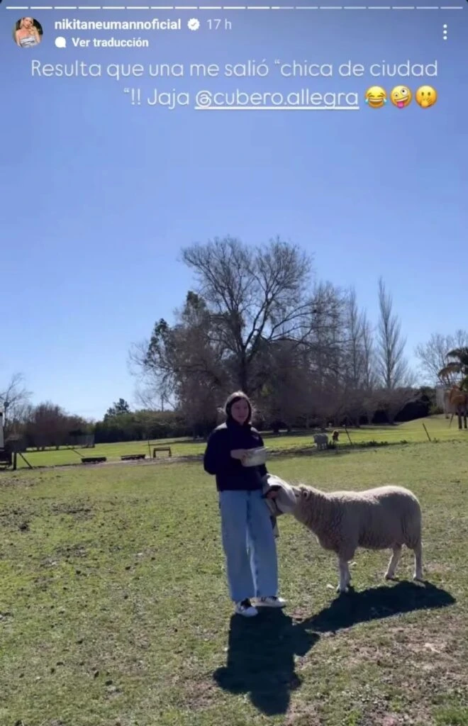 Nicole no dudó en grabar la situación y mostrar su sorpresa por la reacción de su hija. “Resulta que una me salió chica de ciudad. Jajaja”, escribió la blonda entre risas ya que sus otras dos hijas no tienen este miedo. “¡Es Bruna!”, dice de fondo otra de las hijas de la modelo, refiriéndose al nombre de la oveja.