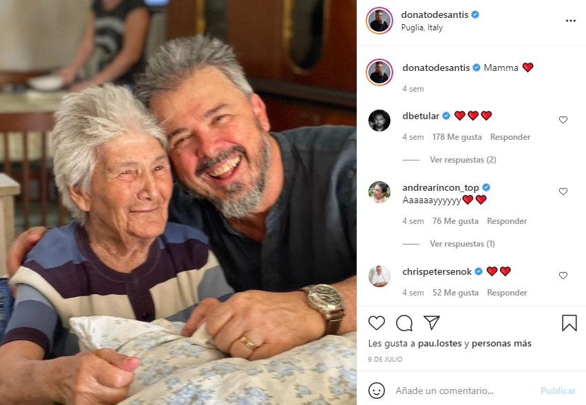 Donato de Santis disfruta de su familia en su país natal, Italia. Resulta que el famoso chef tiene en esas tierras, además de sus hermanos y primos, a María su mamá. La mujer tiene 91 años y goza de buena salud a pesar de los achaques propios de la edad.