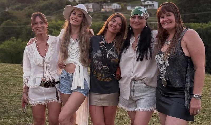 Durante su estadía, Bonelli se mostró rodeada de amigas, risas y atardeceres que parecían pintados. En una de las postales más comentadas, posó sobre el césped con un grupo de mujeres vestidas con estilo country, entre botas tejanas y sombreros, bajo un cielo teñido de naranja.