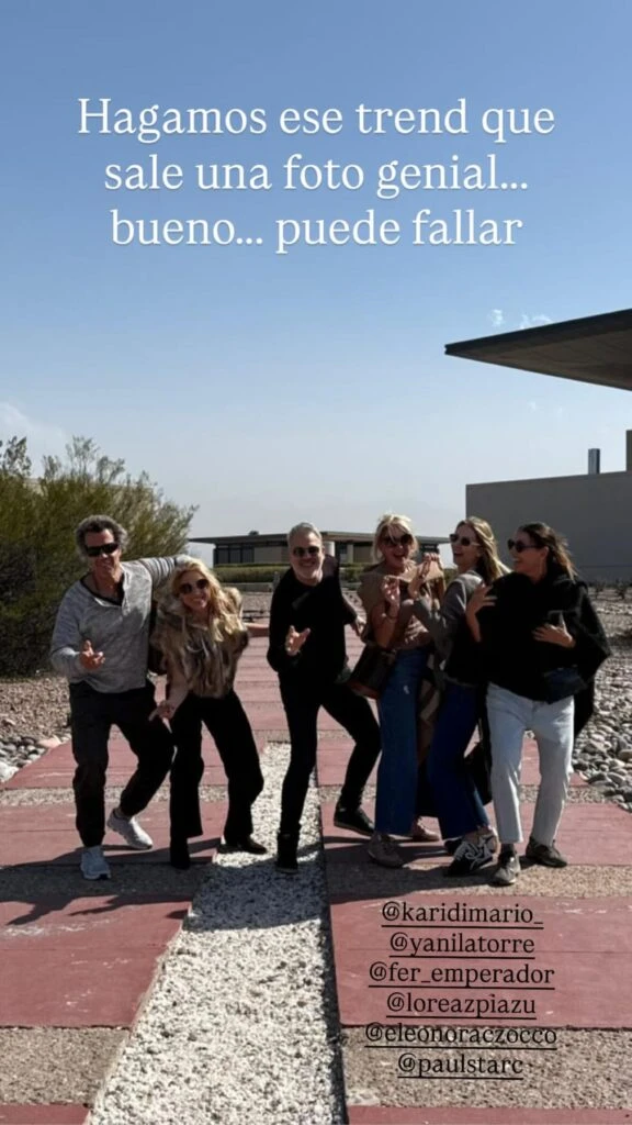 “Estamos en un viaje de egresados a los 50 años, amor. La vida es una sola”, dijo con una sonrisa, mientras subía selfies y videos junto a sus amigas y a Diego. Entre los acompañantes estuvieron Marcelo Cassia, Lorena Azpiazu, Paul Starc, Eleonora Zocco, el vicepresidente de River Plate Matías Patanian, Karina Di Mario, Fernando López y Verónica Neme.