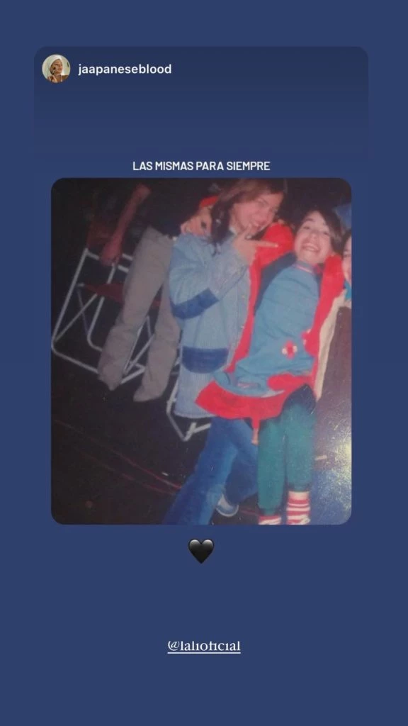 Además del video, la actriz mostró una foto retro de ambas de niñas cuando apenas comenzaban su carrera en el mundo artístico. Luego de Casi Ángeles, las actrices estuvieron distanciadas un tiempo porque la vida tomó diferentes caminos, Suárez fue mamá y siguió con la actuación y Lali se dedicó a la música.