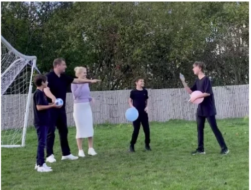 La sueca se encargó de postear en sus plataformas digitales las imágenes que registraron con un celular, que se configuran con una idea peculiar, dado que la pareja reunión a los tres niños en un sector del jardín de la casa en la que habitan en Londres con globos rosas y celestes.