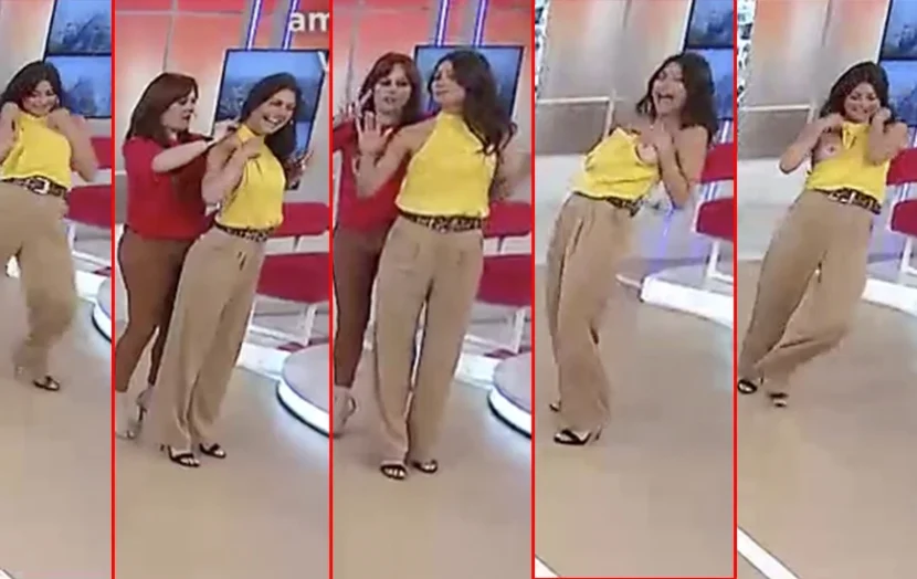 Una de sus compañeras quiso ayudarla, pero muchas manos en un plato...¡Hacen mucho garabato! La prenda se salió y por unos segundos Jujuy quedó ante cámaras "desprovista" de toda prenda de la cintura para arriba. Su reacción fue un grito que retumbó en todo el estudio.