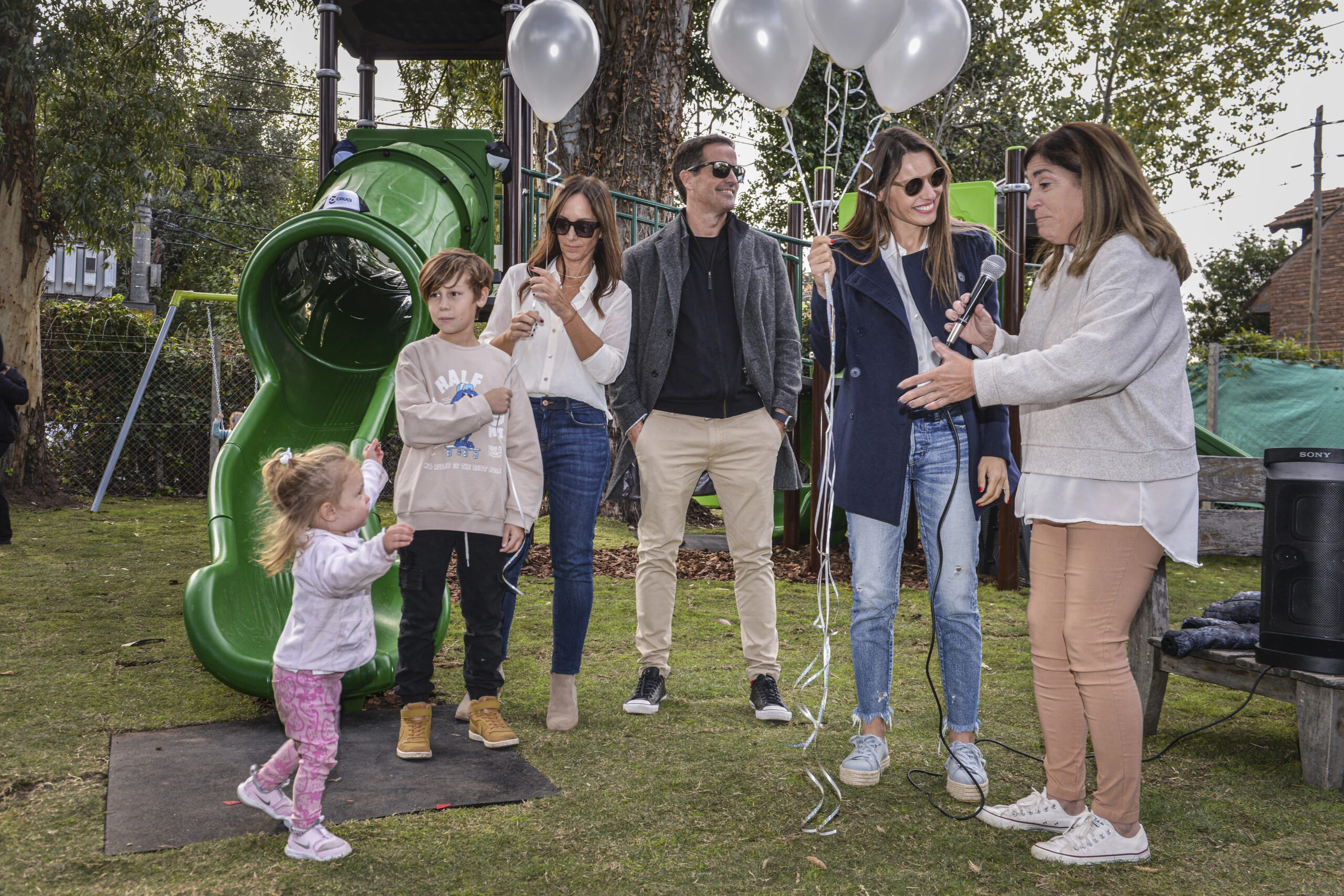 Y agregó: "Diseñamos un juego que está alrededor de un árbol, que tiene mucho verde. Cada uno puso un poquito de lo que más le gustaba. Yo elegí las hamacas, que de chica me gustaban mucho las hamacas. A Anita le gustan mucho los toboganes. A Benicio, a Beltru y a mí nos gustan las hamacas. Así lo fuimos desarrollando entre toda la familia. Y hoy estamos acá apoyándolo".