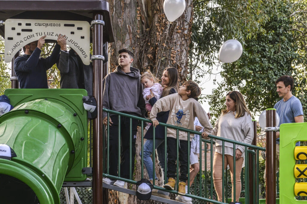 Fue entonces que reveló: "Como todos los niños, hay muchos recuerdos. Nosotros acá tratamos de vivir este día con mucha alegría, viendo la carita de los chicos disfrutar de estos juegos. Me acompañan amigos y familiares. LA verdad que conmemoramos este día con una sonrisa". Además soltaron globos blancos en el homenaje.