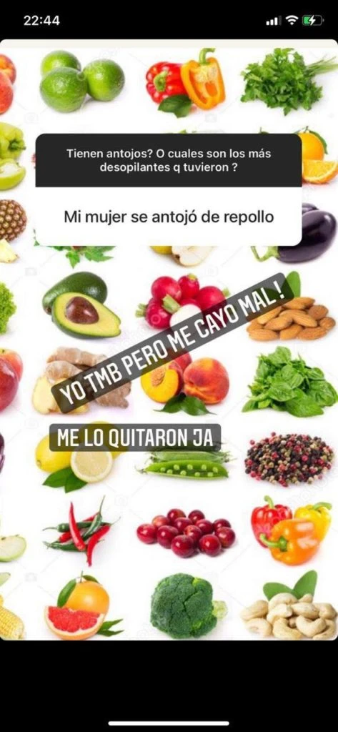 A modo de juego de preguntas y respuestas, a fin de pasar el tiempo de encierro, y desde Mendoza, la flamante embarazada interactuó con otras mujeres que se encuentran en su mismo estado y fue entonces cuando contó “Me antojé repollo, lo comí, pero me cayó re mal. Por eso me lo quitaron”.