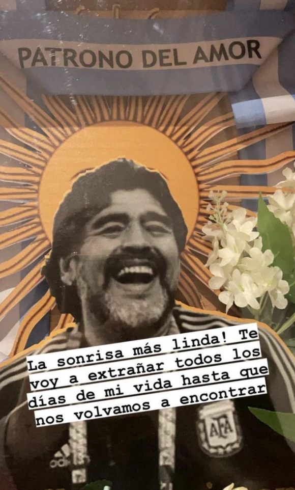 Utilizando sus historias de Instagram, no solo compartió una foto retro de ellos dos juntos, sino que también la actriz mostró el altar que le regaló una fanática de Maradona para que le rezara cada día al astro del fútbol.