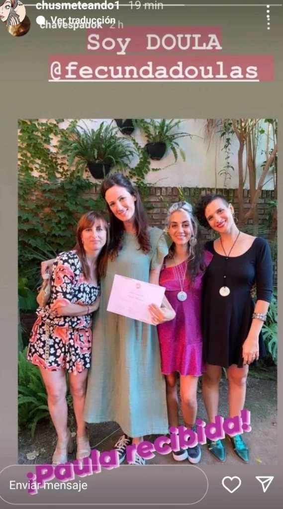 “Soy doula”, escribió la modelo en una foto que subió a sus historias de instagram, compartiendo la feliz noticia con sus miles de seguidores y que reposteó la cuenta Chumeteando. Y así, la flamante acompañante de mamás celebró su logro en familia y el nuevo título en las redes sociales.