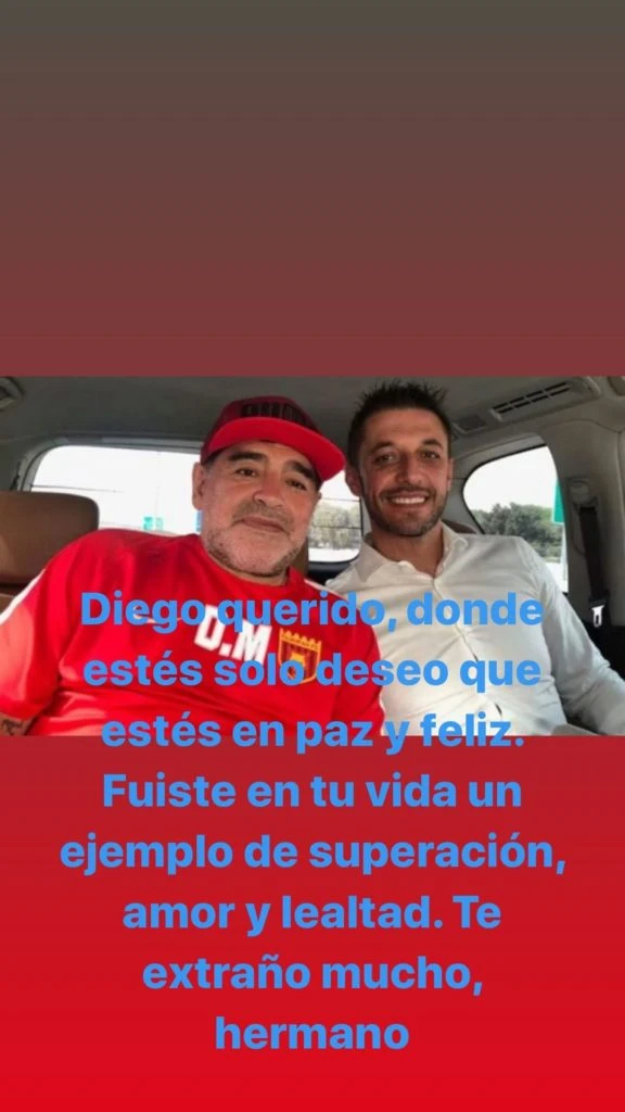 Hace unos días el abogado reapareció con un fuertísimo mensaje para Diego Maradona: “Diego querido, donde estés solo deseo que estés en paz y feliz. Fuiste en tu vida ejemplo de superación, amor y lealtad. Te extraño mucho, hermano”. Las palabras fueron publicadas entre sus stories y las acompañó con una foto de ambos.