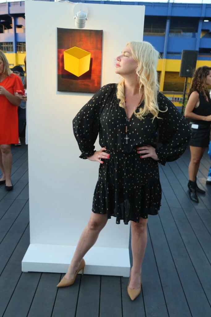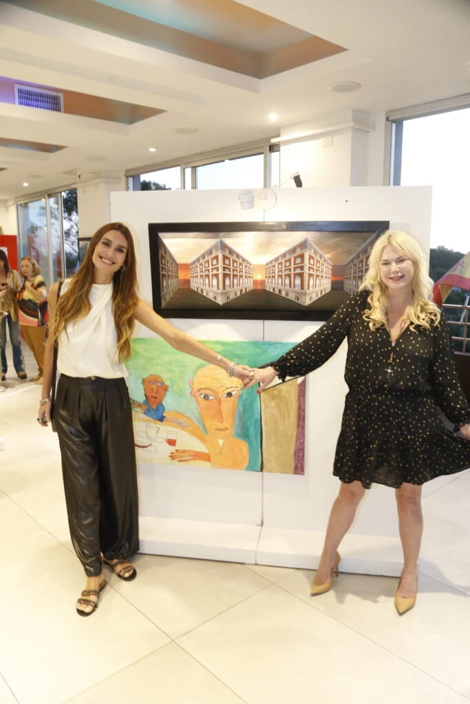 Relajada, a pesar del mal transe, se encontró con Paula Morales, con quien compartió algunos tramos de su escuela primaria. Juntas conversaron con los artistas Perdro Roth Antonio Aquilia y Guillermo Dibbern, expositores en la muestra.