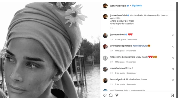 A través de su Instagram, Juanita eligió una foto de primer plano en blanco y negro, todo un metamensaje, que induce a la introspección y le agregó unas líneas muy sentidas: "Mucho vivido. Mucho recorrido. Mucho aprendido. Ahora a seguir por más! Gracias por lo sucedido".
