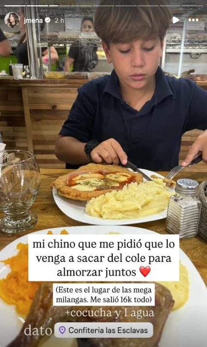 “Mi chino me pidió que lo venga a sacar del cole para almorzar juntos. (Este lugar de las mega milangas. Me salió todo 16k), más una cocucha y un agua”, comenzó escribiendo Barón, quien luego pasó a desarrollar lo que ocurre.