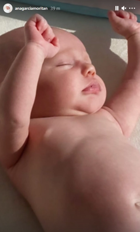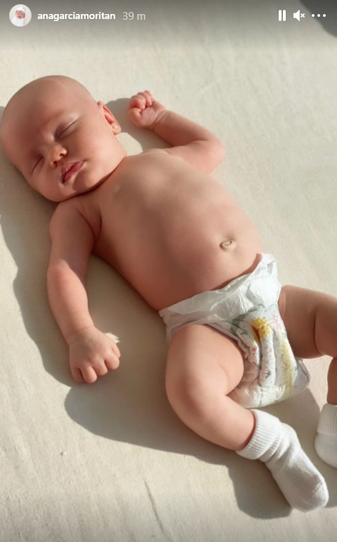 Y fue desde su cuenta oficial que Pampita compartió en sus historias una secuencia de fotos de su hijita Ana durmiendo a pata suelta, solo cubierta por un pañal, plácidamente entregada al sueño.