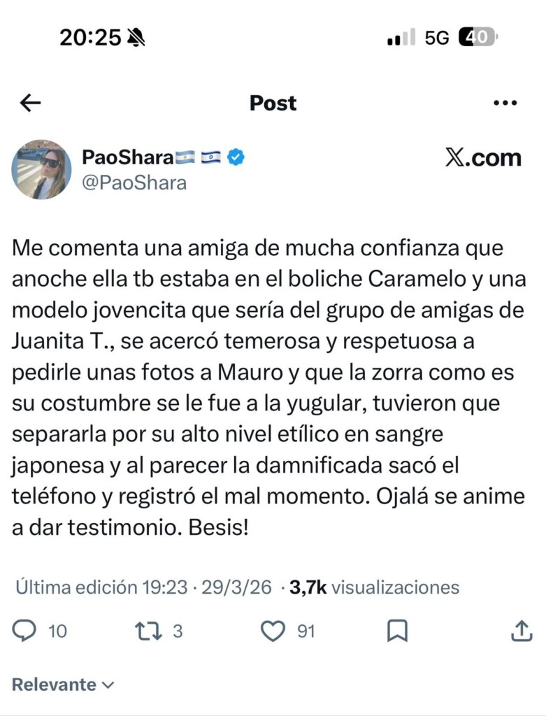 Según ese relato, una joven modelo se habría acercado con respeto a pedirle una foto a Mauro Icardi. Sin embargo, lo que parecía un momento habitual en este tipo de salidas habría derivado en una situación incómoda. “Se acercó temerosa y respetuosa a pedirle unas fotos a Mauro”, detalla el mensaje. Y agrega un dato que generó fuerte repercusión: “Se le fue a la yugular”.