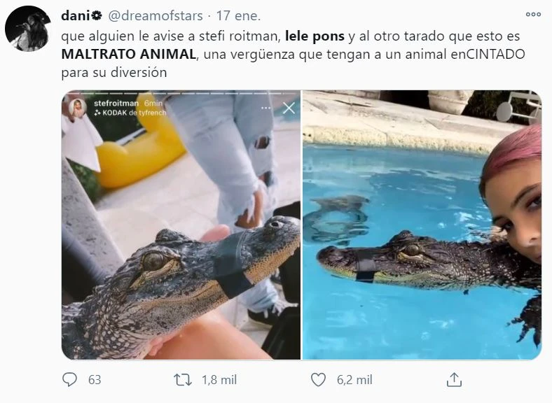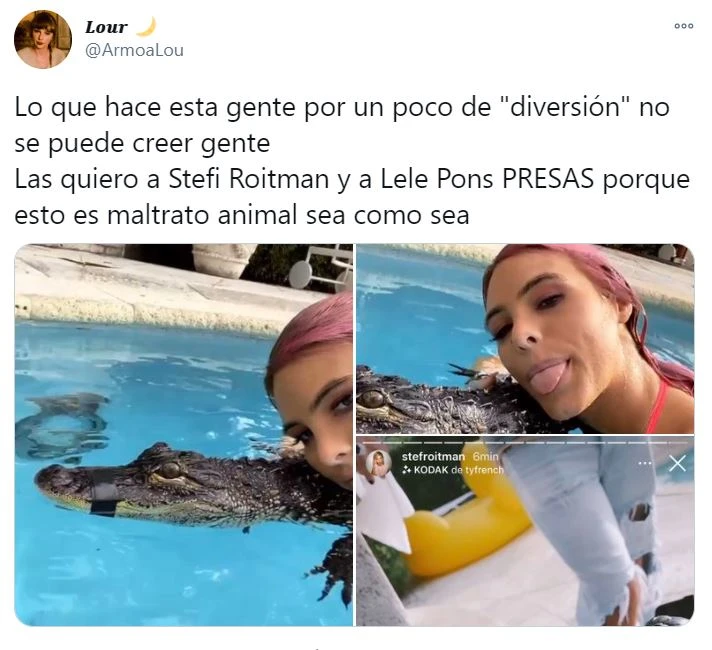 Stefi tal vez pecó de ingenua y ni siquiera se percató de que subir fotos y videos de la cantante nadando lo más campante en su piscina con un lagarto con el hocico encintado, iba a indignar a la comunidad de usuarios de Twitter e Instagram, que las fulminaron con una lluvia de tuits e incluso hicieron campaña para reportar sus cuentas y cancelarlas.