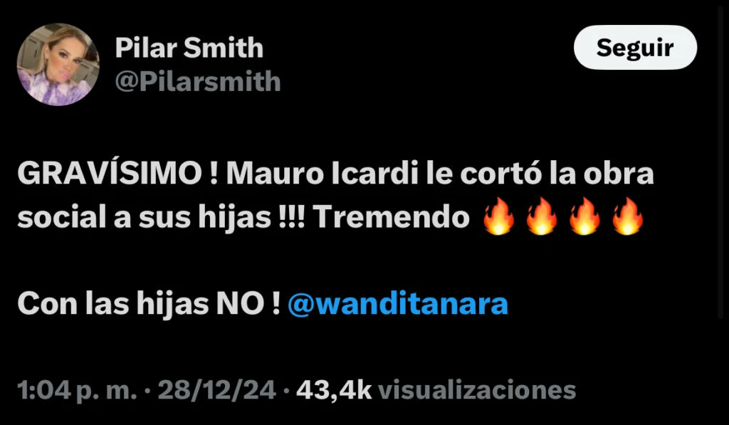 Por otro lado, la periodista Pilar Smith agregó un dato que desató más críticas: Icardi también habría dejado sin obra social a sus hijas. “Decidió cortar la cobertura de las nenas”, aseguró Smith, dejando abierta la pregunta sobre cómo se resolverá este conflicto.
