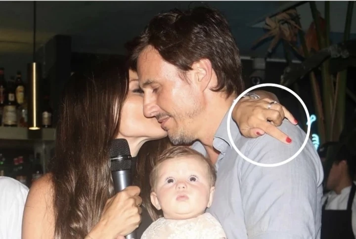 Si bien parecía un festejo más como el que nos tiene acostumbrados la modelo, en el momento de tomarse las clásicas fotos de toda celebración la modelo abrazó a su marido de una forma muy extraña y haciendo un llamativo gesto con sus manos.