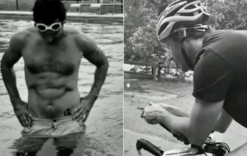 “Entrenando. Ironman 5051”, redactó el actor en los posteos realizados en Instagram Stories en los que se lo ve realizando ejercicios, nadando en una pileta y andando en bicicleta.
