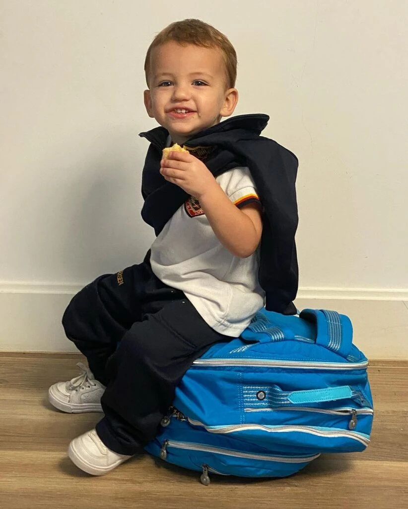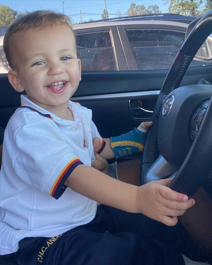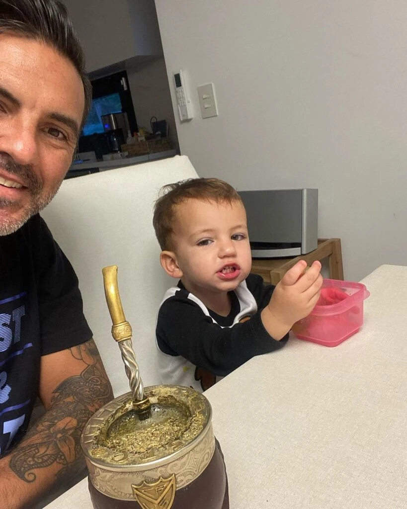 Luca jugando en la casa, disfrazado con los anteojos de la mamá, manejando el auto de la familia, con su uniforme de colegio, tomando mate y en diversas escenas de la intimidad: así lo mostró Cubero en sus redes sociales, donde suele mostrar buena parte de su cotidianidad.