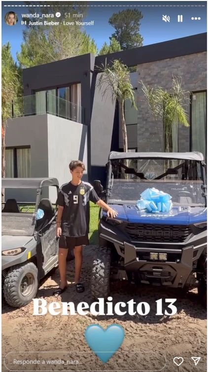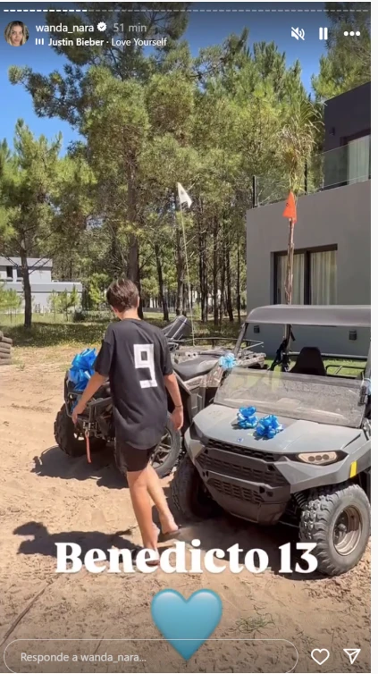 ¿Cómo? Wanda optó por obsequiarle a Benedicto, uno de sus tres hijos que trajo al mundo de la mano de Maxi López, tres modelos distintos de esas máquinas playeras. Sí, la ex conductora de Bake Off le dio tres bólidos a su pequeño en el marco de su cumpleaños de trece.