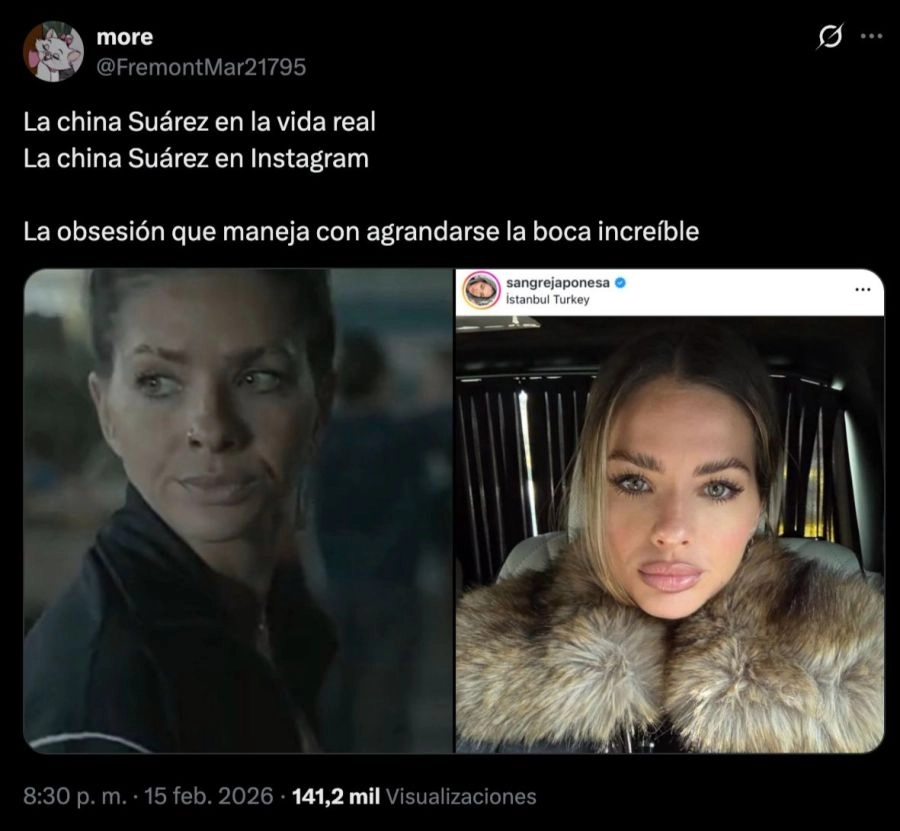 En X e Instagram, algunos usuarios comenzaron a comparar imágenes de la serie con posteos recientes de la actriz, especialmente fotos que compartió durante su estadía en Turquía. El foco estuvo puesto en sus labios, que —según remarcaron— lucirían distintos en pantalla respecto a sus publicaciones personales.