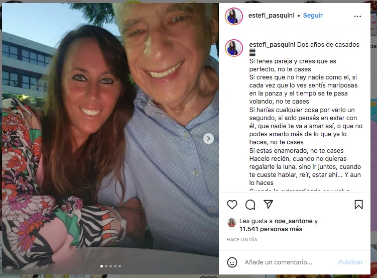 Estefanía no quiso dejar pasar la oportunidad para saludar a Cormillot y para eso decidió armar un posteo peculiar en su feed de Instagram. Con varias fotos de ambos, en diversos contextos y siempre sonrientes, Pasquini escribió un texto que llamó la atención.