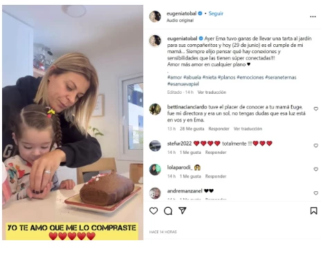 Lo llamativo se centró en el origen de ese plato, dado que Eugenia narró con lujo de detalles el punto cero de toda la historia y contó: “Ayer Ema tuvo ganas de llevar una tarta al jardín para sus compañeritos y hoy (29 de junio) es el cumple de mi mamá".