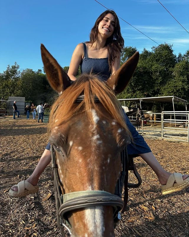 A pesar de su preferencia por mantener un perfil discreto, la actriz optó por mostrar en su cuenta de Instagram algunas instantáneas del pequeño disfrutando mientras corre junto a caballos en una pista, apreciando al pequeño de espaldas, con una melena castaña hasta los hombros .