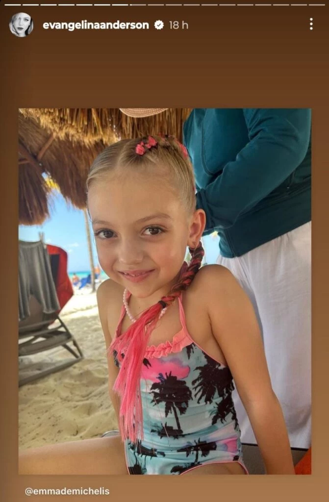 Además, en sus historias de Instagram, Eva compartió videos desde el hotel donde se encuentran hospedados, así como una imagen de Emma disfrutando la playa con una trenza con tonos rosado.