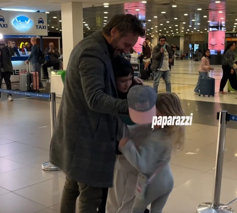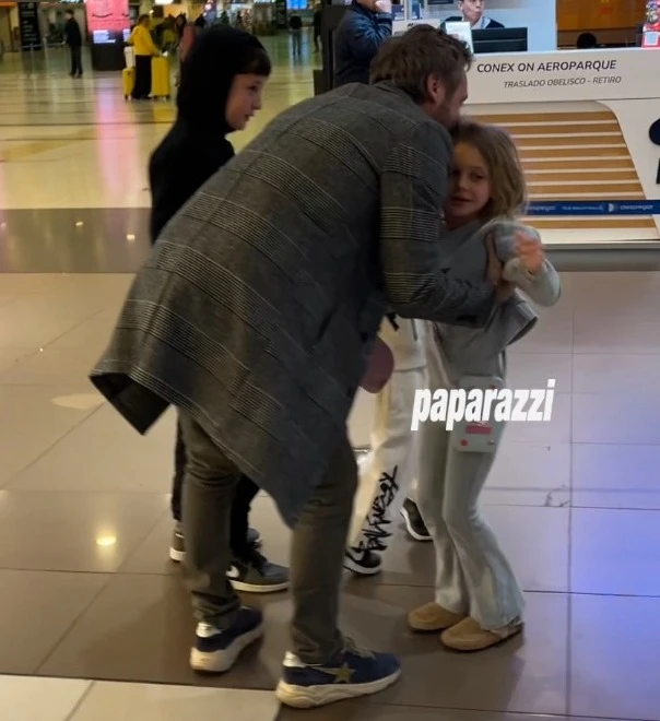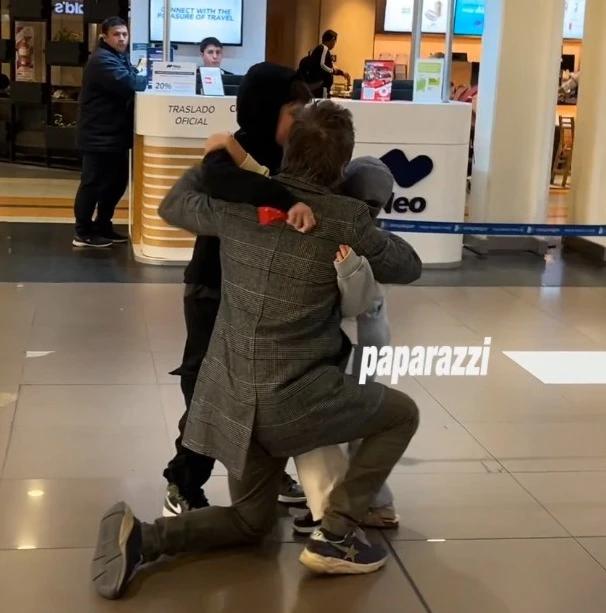 Apenas vieron a sus papá, los niños salieron corriendo a abalanzarse en sus brazos. En un emotivo abrazo, donde hubo besos y mucho cariño, el actor llegó acompañado de uno de sus otros hijos, con quien tuvo con Pampita.