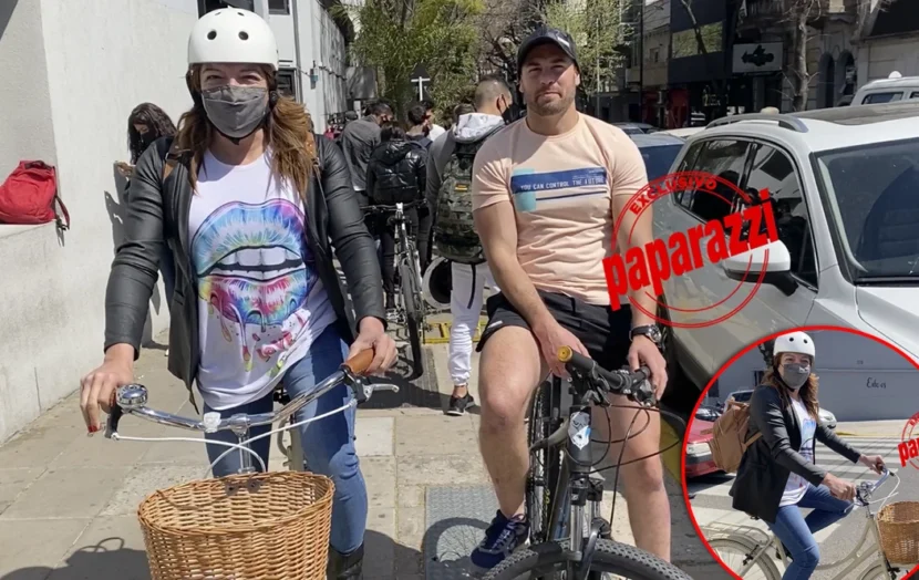 Las cámaras lograron captar esa escena muy tierna, en la que la pareja de Lizy la fue a buscar al mediodía para pasear por las calles de Buenos Aires, bajo los influjos de un día soleado. La humorista explicó su elección: “Cada vez que puedo vengo en bici”.