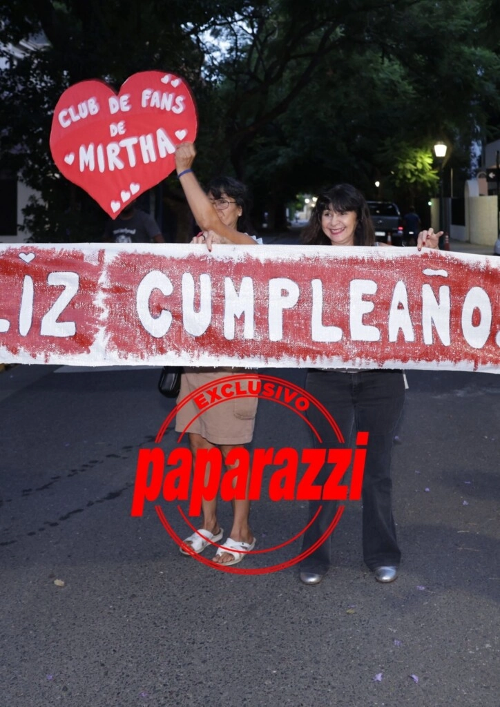 Marcela Tinayre brilló con un conjunto verde con transparencias que combinó perfectamente con la elegancia de su madre, mientras que los asistentes se mezclaban entre anécdotas, risas y abrazos. El club de fans de La Chiqui también hizo sentir su amor desde afuera, con carteles y aplausos que acompañaron la llegada de la estrella.