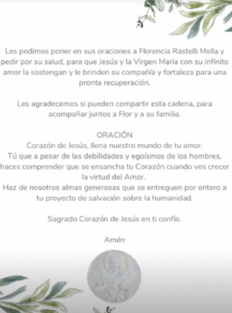Amigos, familiares y seguidores de Rastelli Mella tomaron sus redes sociales para pedir oraciones y buenos deseos. Desde su cuenta, que supera los 90 mil seguidores, se publicó un mensaje emotivo que decía: “Recen por mí”, invitando a su comunidad a acompañar este difícil momento.