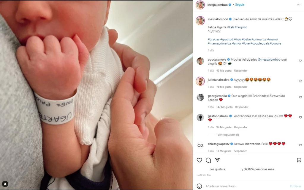 Por su parte, Julieta Nair Calvo, quien está en la dulce espera de su primer bebé, expresó junto a emojis de caritas enamoradas: “Ayyy”. Además, Mariana "Muni" Seligmann, que tuvo a su hija Carmela el año pasado, también comentó: “¡¡¡Bienvenido Felipe!!! Felicitaciones @inespalomboo. Aquí estamos para lo que necesites haciendo red de contención”.