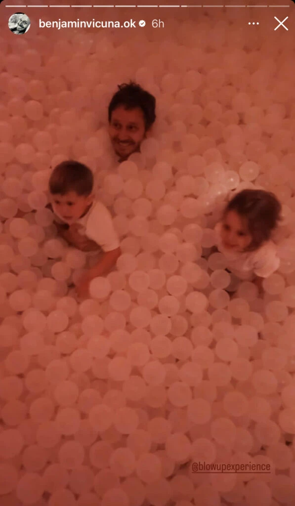 Todas las historias de este día fueron al lado de sus hijos. En principio, posó junto a Bautista, Benicio y Beltrán, sus hijos con Pampita, en un restaurante y luego, se mostró junto a Magnolia y Amancio, sus hijos con la China Suárez, jugando en un gran pelotero.