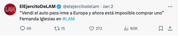 "Vendí el auto para irme a Europa y ahora está imposible comprar uno", se sinceró Fernanda, quien se deshizo del bien meses atrás y ahora no encuentra la forma de volver a convertirse en la propietaria de un automóvil. Efectos de la dura realidad.