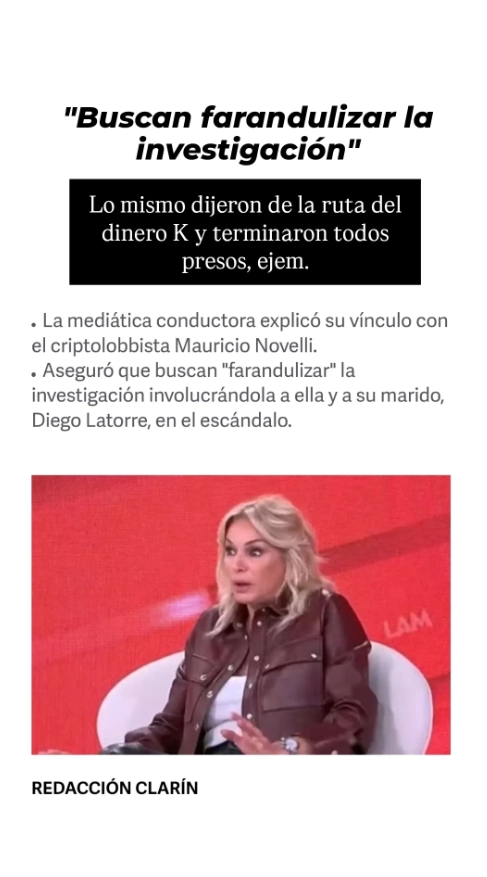 “Yanina Latorre aparece en la investigación del caso Libra. Se trata de una conversación con el imputado Mauricio Novelli donde le cuenta que habló con Milei y luego pautan unas publicaciones en Instagram”, lanzó la panelista de Puro Show, y agregó, en otra historia: “Tengo la causa, chichis. No empiecen a decir que es mentira ni nada de eso". "Me voy a comer atún”, terminó, en referencia al latiguillo de Yanina cada vez que tiene una bomba entre manos.