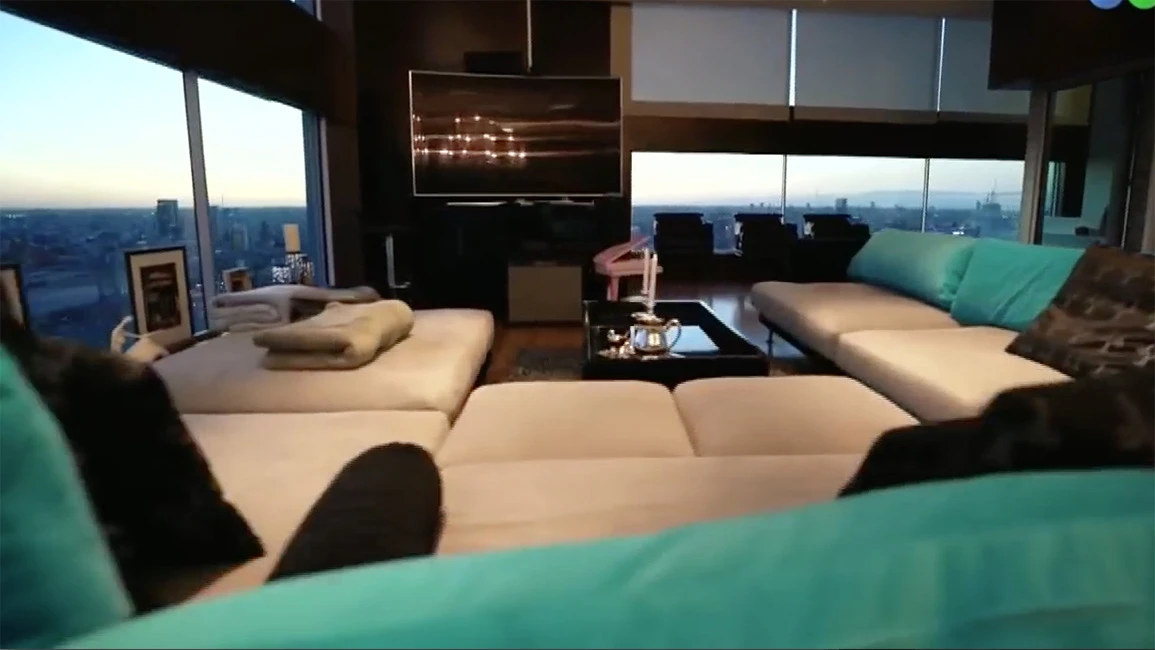 El penthouse ocupa el piso 47 de una impresionante torre de Puerto Madero. El increíble living, totalmente vidriado invita al suspiro. “La vista es todo. Puedo ver 360, increíble”, dijo la morocha.
