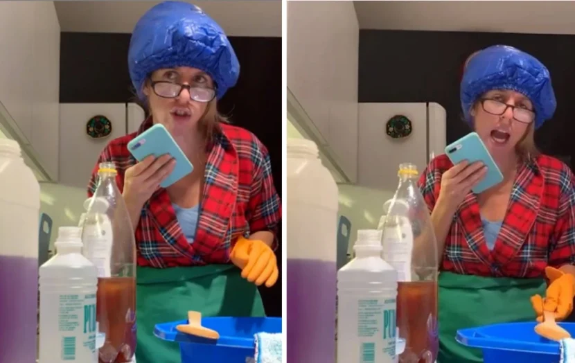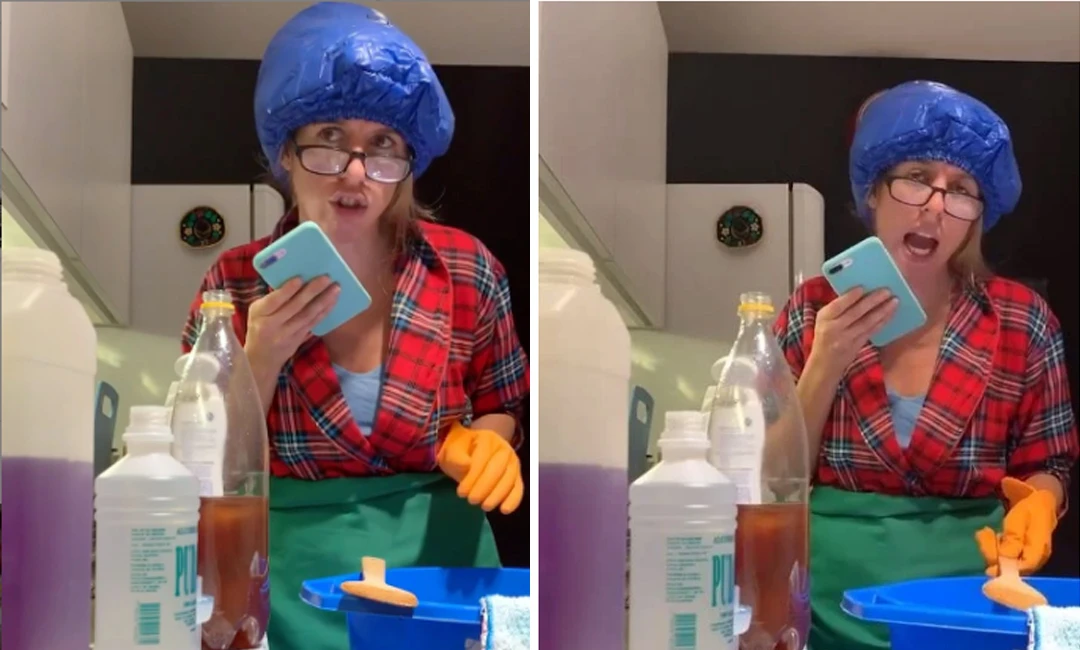 Bertotti posteó la producción a su Instagram y aclaró en la descripción a modo de introducción: “Mi mamá o te limpia o te explota. Cuando tu mamá hace cócteles de limpieza explosivos y le echa la culpa a la calidad de las botellas, la amo”.