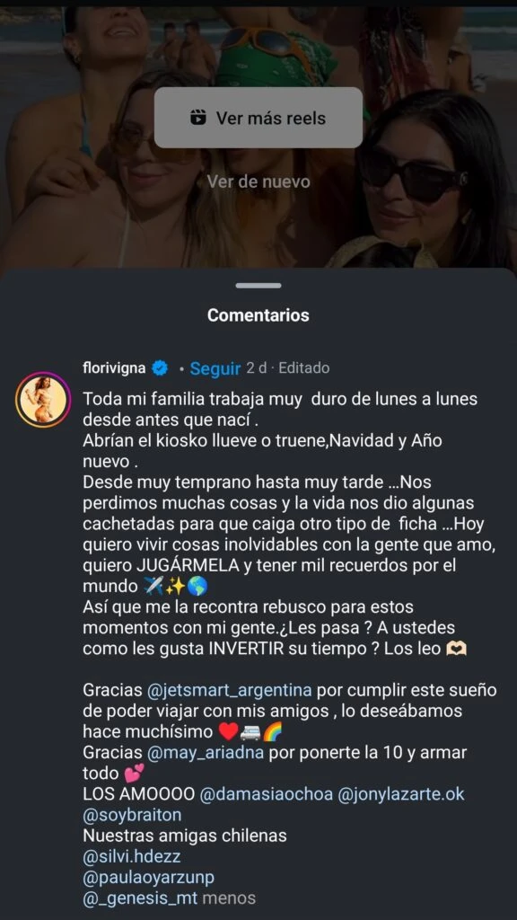 Flor Vigna decidió irse a Brasil para disfrutar unos días de la playa. Sin embargo, decidió tomarse unos minutos para hablar con sus seguidores de redes sociales. A su vez, hizo una importante reflexión y reveló lo que está sufriendo su familia.
