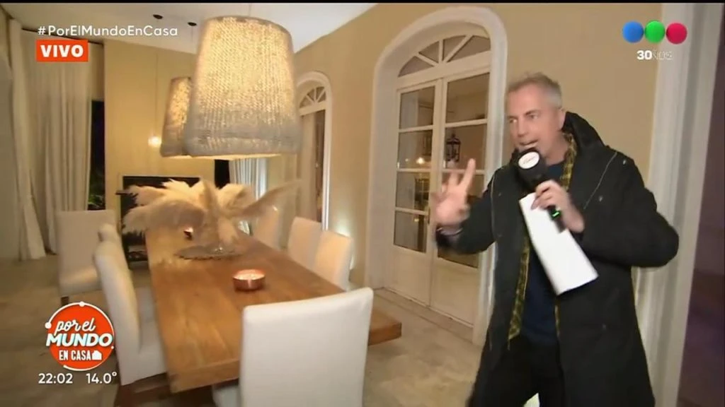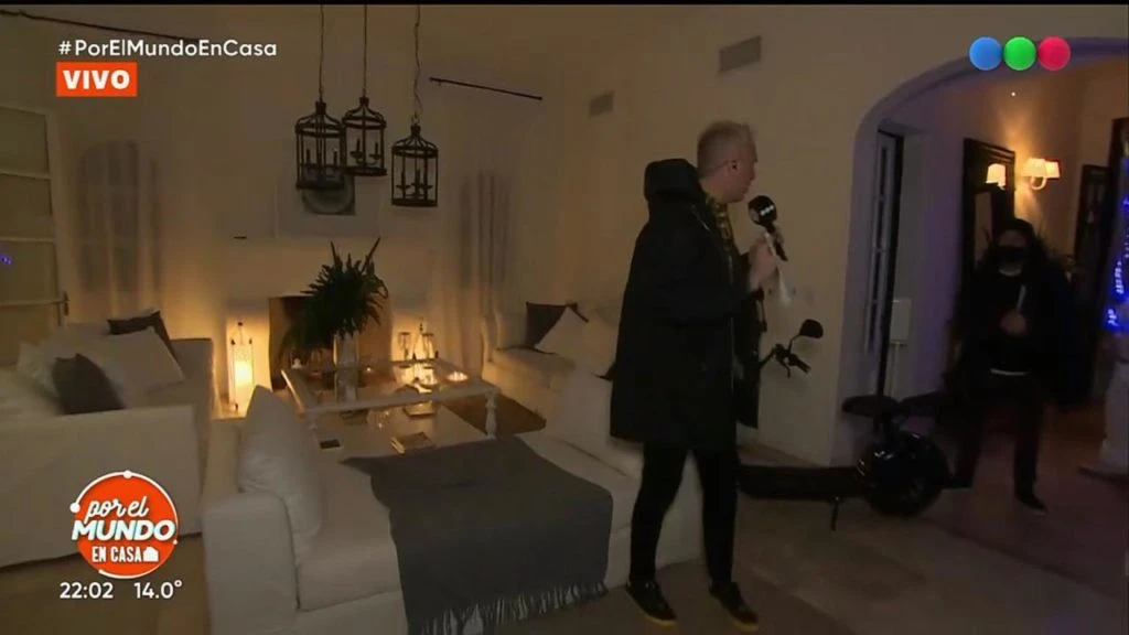 En la nueva versión de “Por el Mundo – En Casa” Marley visitó el majestuoso hogar de su amiga y colega Florencia Peña. En la entrada cuenta con un sanitizador digital para las manos, en estos tiempos de pandemia. El living se encuentra en un amplísimo espacio con un juego de sillones color crema de ensueño.