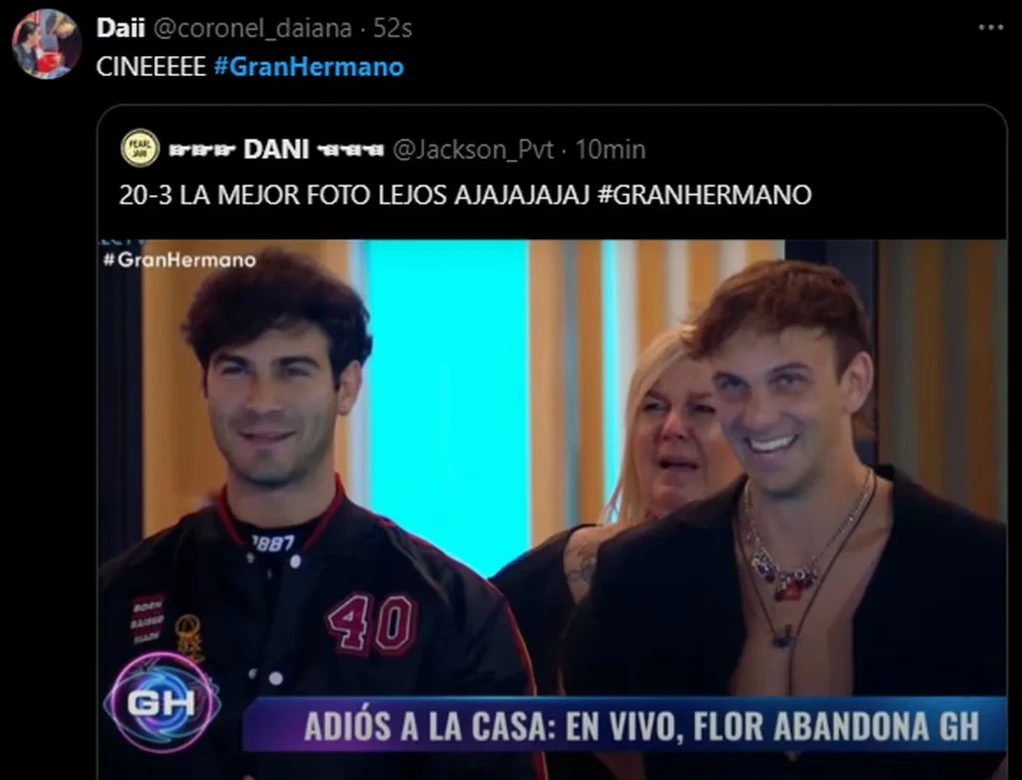 Las redes sociales explotaron tras la salida de Florencia de la casa. Y los mensajes que los internautas subieron a X resultaron de los más disparatados y graciosos, remarcando algunas situaciones que se suceden en el programa. "Solo cuando Furia está en placa dejan a 3 en un versus", "Nos diste más que muchas plantas ahí adentro. No merecías irte. Vivirás en nuestros corazones queen Florencia".
