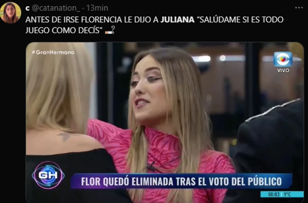"Virginia después de la salida de Flor preparándose para que ahora Furia empiece a putearla y maltratarla a ella", "Icónica Florencia diciéndole a Juliana ´salúdame si es todo juego como decís´", "Si ese porcentaje fuese real hubiesen sacado a Nico y dejado a flor vs. Furia", fueron algunos de los comentarios que se viralizaron.