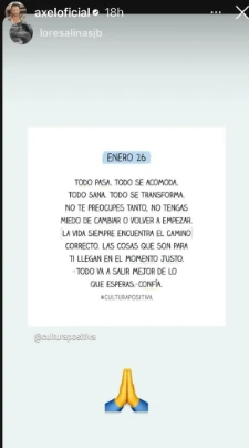 Ante la creciente especulación, Axel decidió abordar la situación y expresar su punto de vista a través de sus redes sociales. En un mensaje reflexivo, compartió la idea de que todo en la vida tiene un propósito, instando a la confianza y la superación. Sin embargo, no pasó mucho tiempo antes de que el propio cantante se dirigiera directamente a sus seguidores para abordar los rumores.