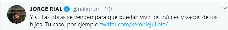 Y el periodista enseguida le retrucó: “Y sí, las obras se venden para que puedan vivir los inútiles y vagos de los hijos. Tu caso, por ejemplo”.