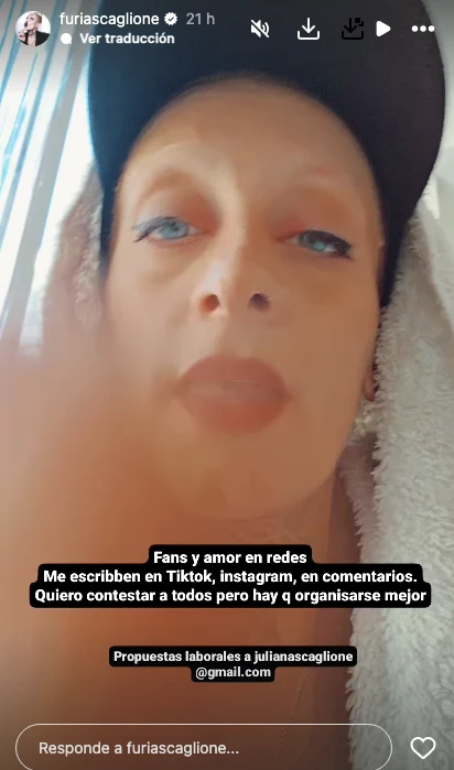 Desde su cuenta, Furia subió un particular mensaje que generó algunas dudas. Porque la participante más picante de la edición que acaba de terminar de la competencia de aislamiento y adaptación en la convivencia, posteó un mensaje en donde dejó un cuenta de mail para acercarle propuestas laborales.