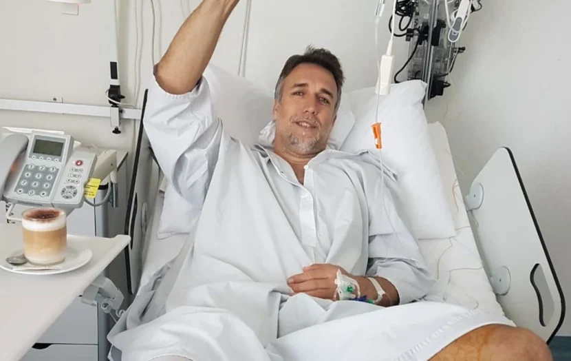 “Primera etapa superada, la prótesis en el tobillo izquierdo ya es una realidad, ahora vamos por la recuperación. Gracias por tanto cariño y preocupación”, escribió el exdelantero de la Selección argentina en Twitter y Facebook junto a una foto en la que se lo ve sonriente desde la cama de una clínica de Suiza con su pierna en alto.