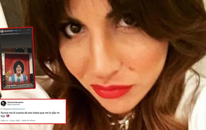 El 25 de noviembre, una hora antes de que se conociera la noticia de la muerte del ídolo máximo de todos los tiempos, Gianinna subió a Instagram la foto de un mural de su papá que había encontrado en la calle. En la pintada, Diego está comiendo una porción de pizza con la camiseta del seleccionado nacional. Pura emoción.