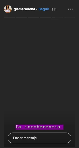 La madre de Benja también agregó otra historia en su perfil escasa en texto, pero muy directa en la postura. Gianinna subió una foto en negro con una sola palabra: “Incoherencia”.